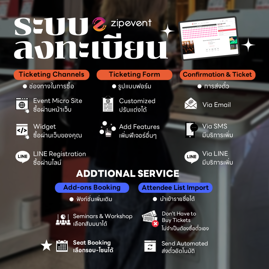 - อ่านเพิ่มเติมเกี่ยวกับระบบลงทะเบียนที่ Registration Zipevent