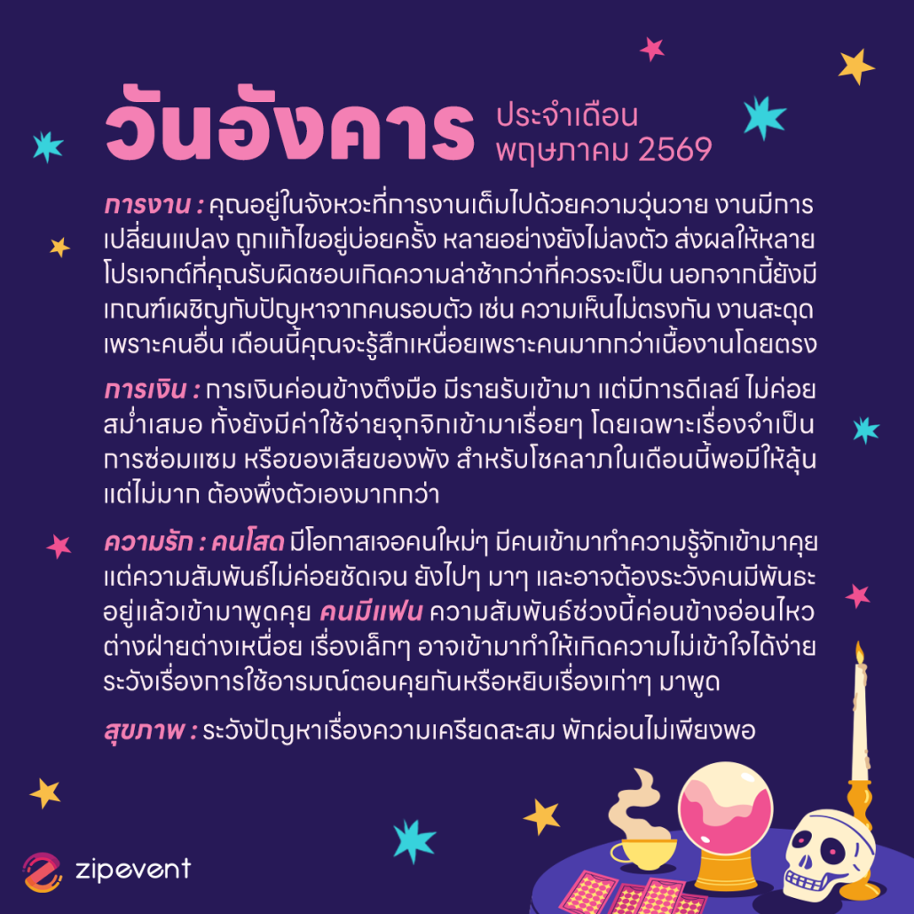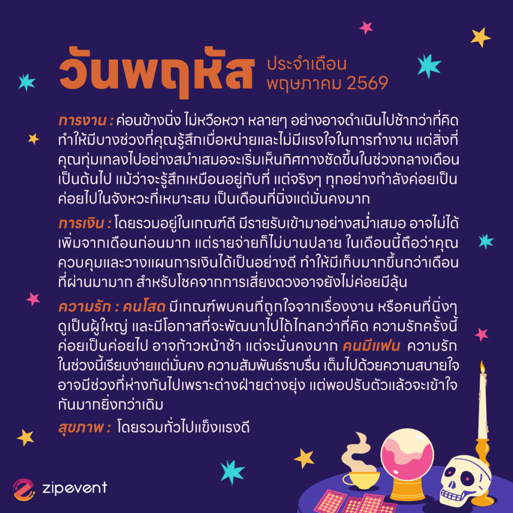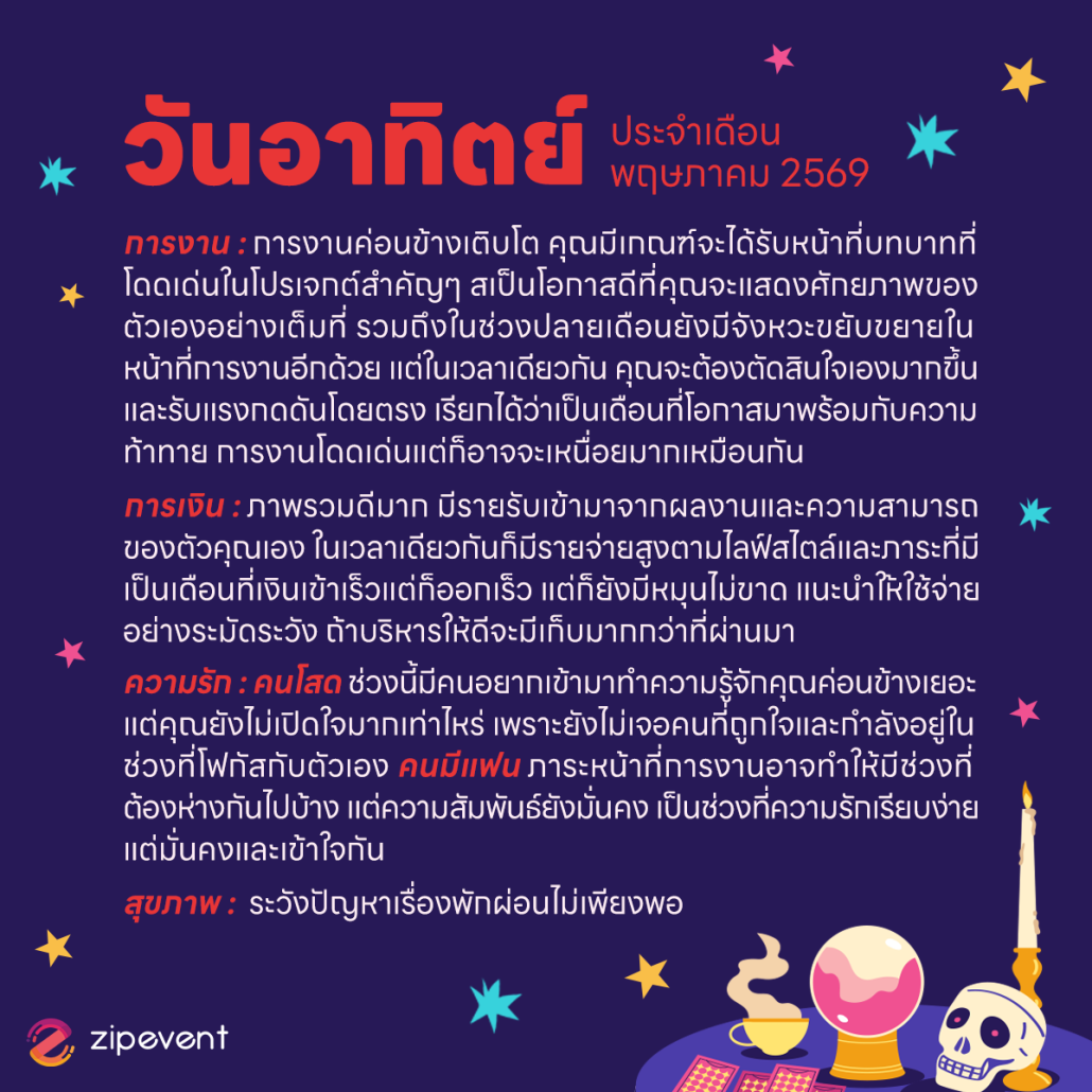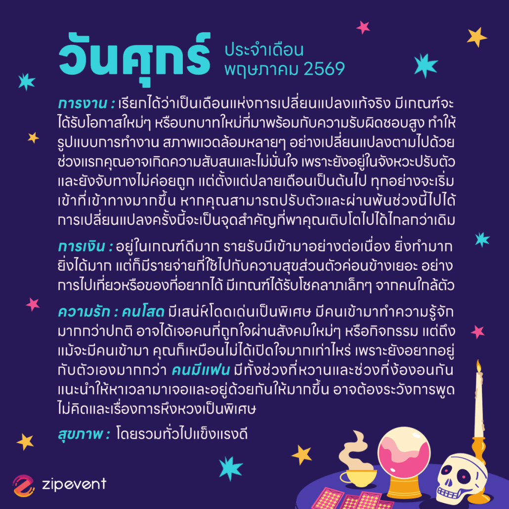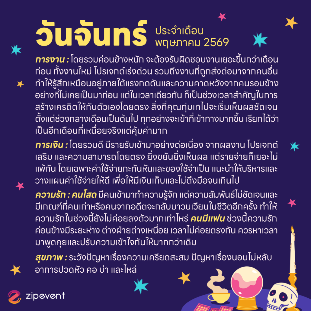 Zipevent | ดูดวงวันเกิด เดือนพฤษภาคม 2569