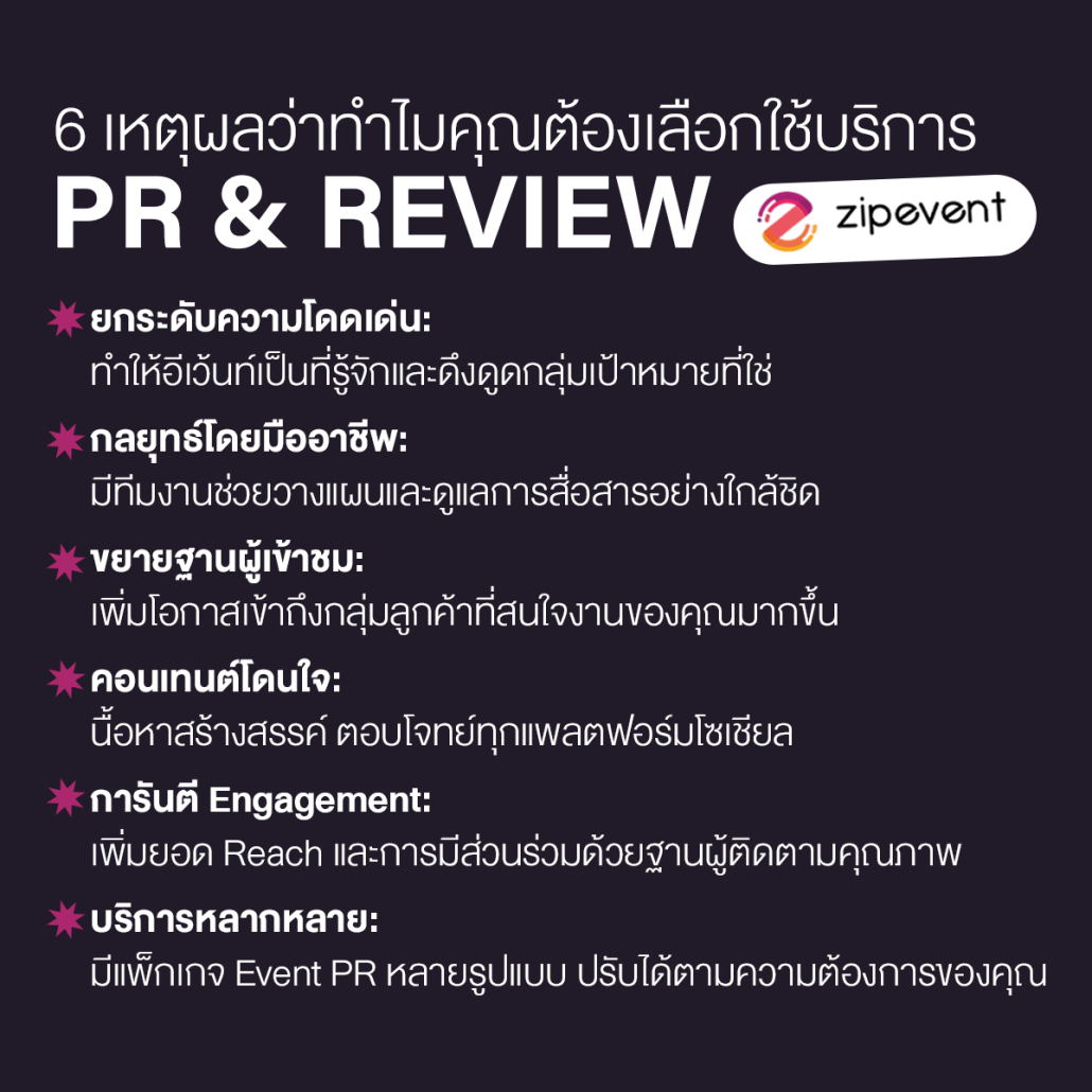 6 เหตุผลว่าทำไมคุณต้องเลือก ใช้บริการ PR & Review จาก Zipevent?